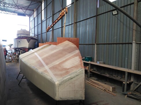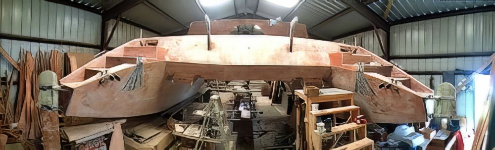 The boat is a wood/glass/Epoxy composite construction. Easy to build by amateurs and professionals alike.