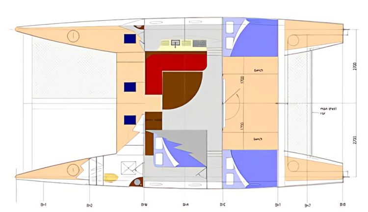 The boat sports a-symmetrical hulls in the tradition of the famous CSK designs.