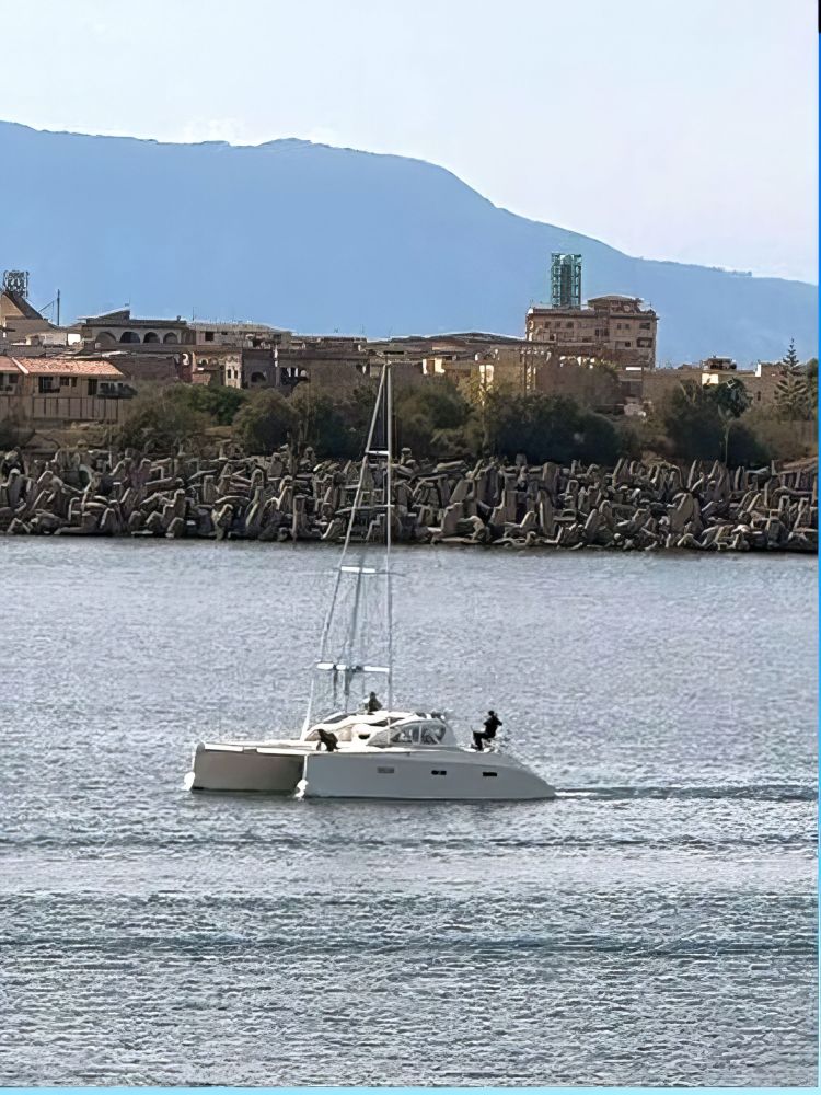 The boat has a draft of only 60cm (2 feet), the rudders up.